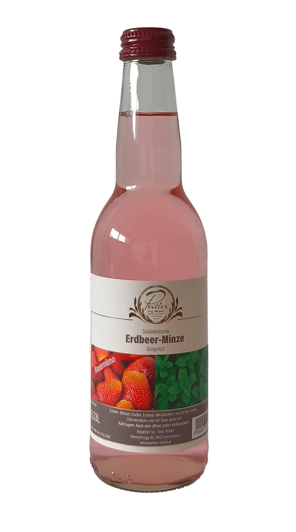 Zutaten: Erdbeer-Minze, Zitronensäure, Zucker und mit Soda gespritzt.